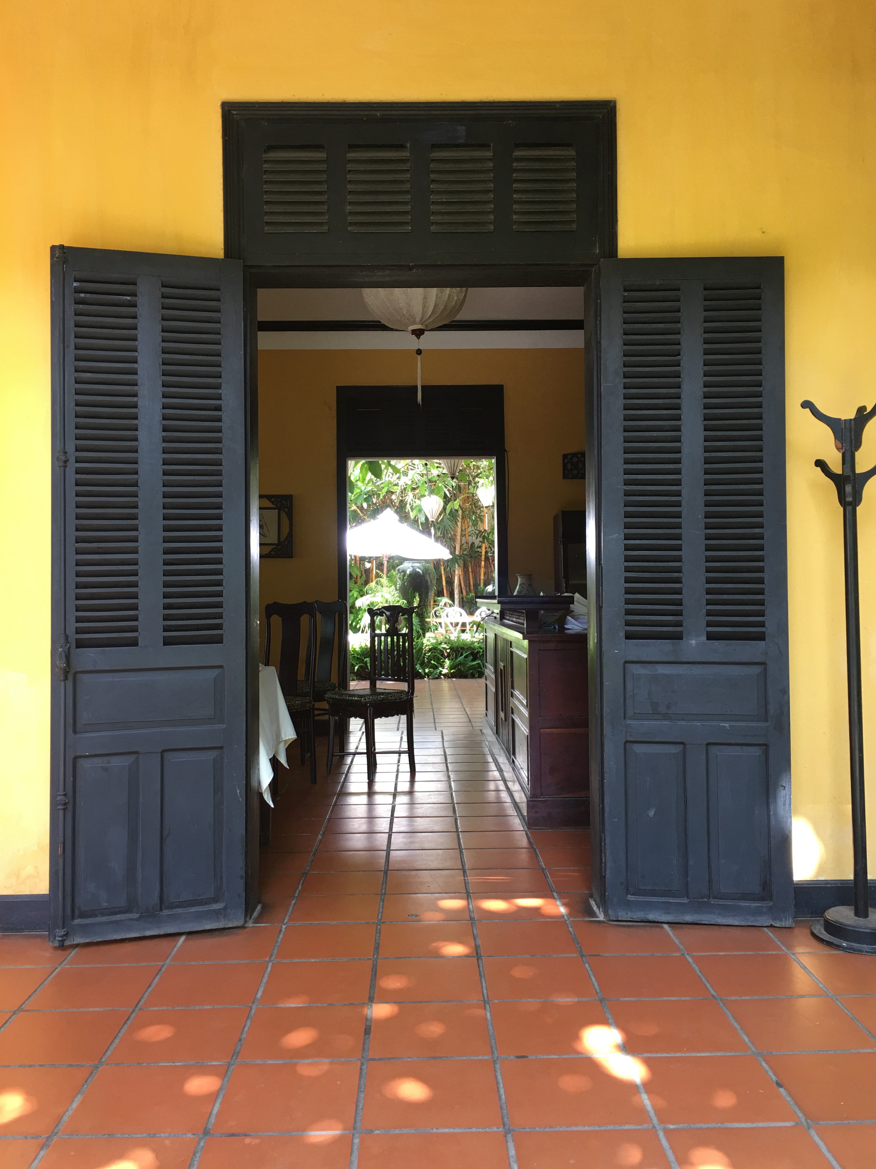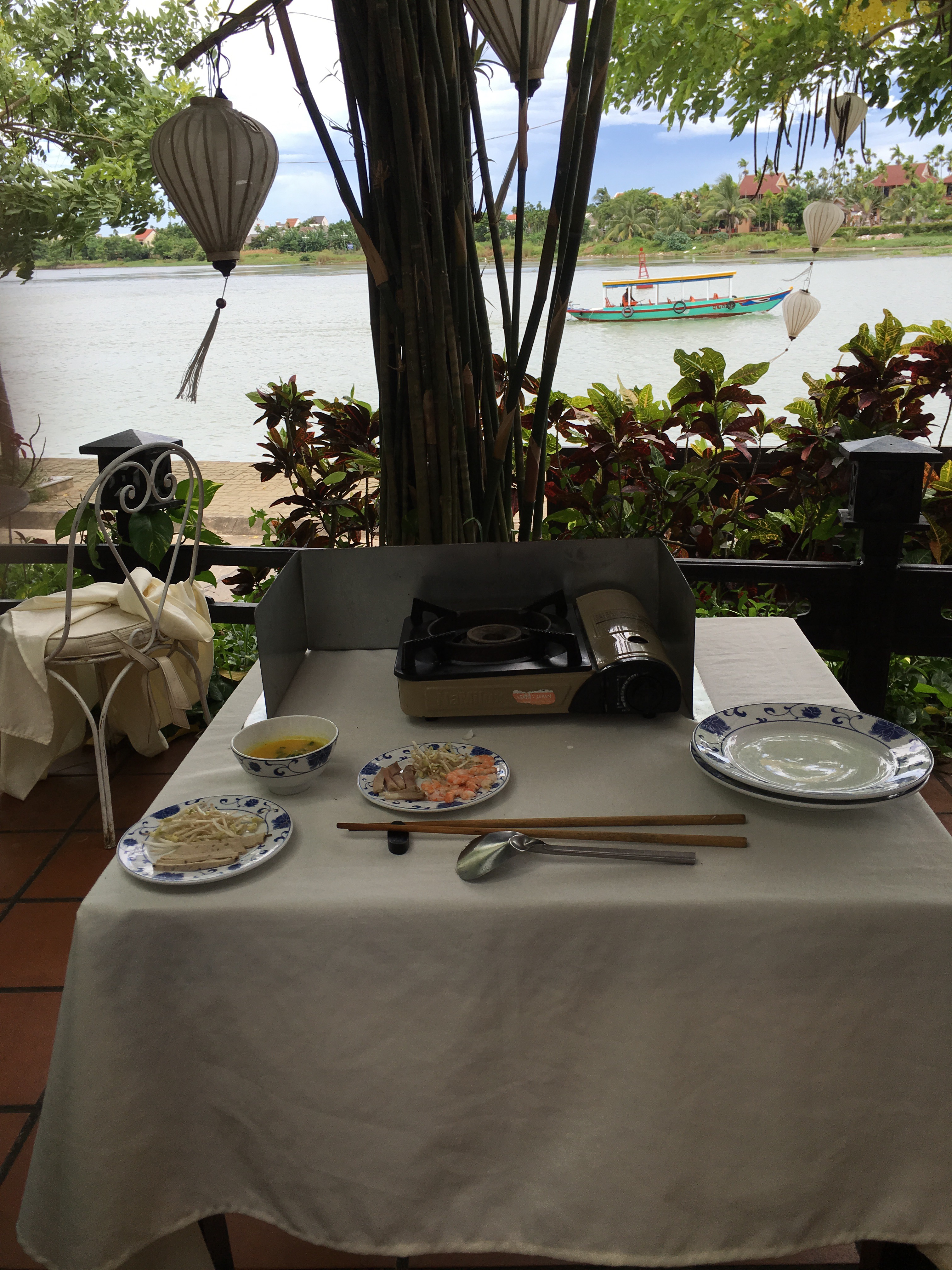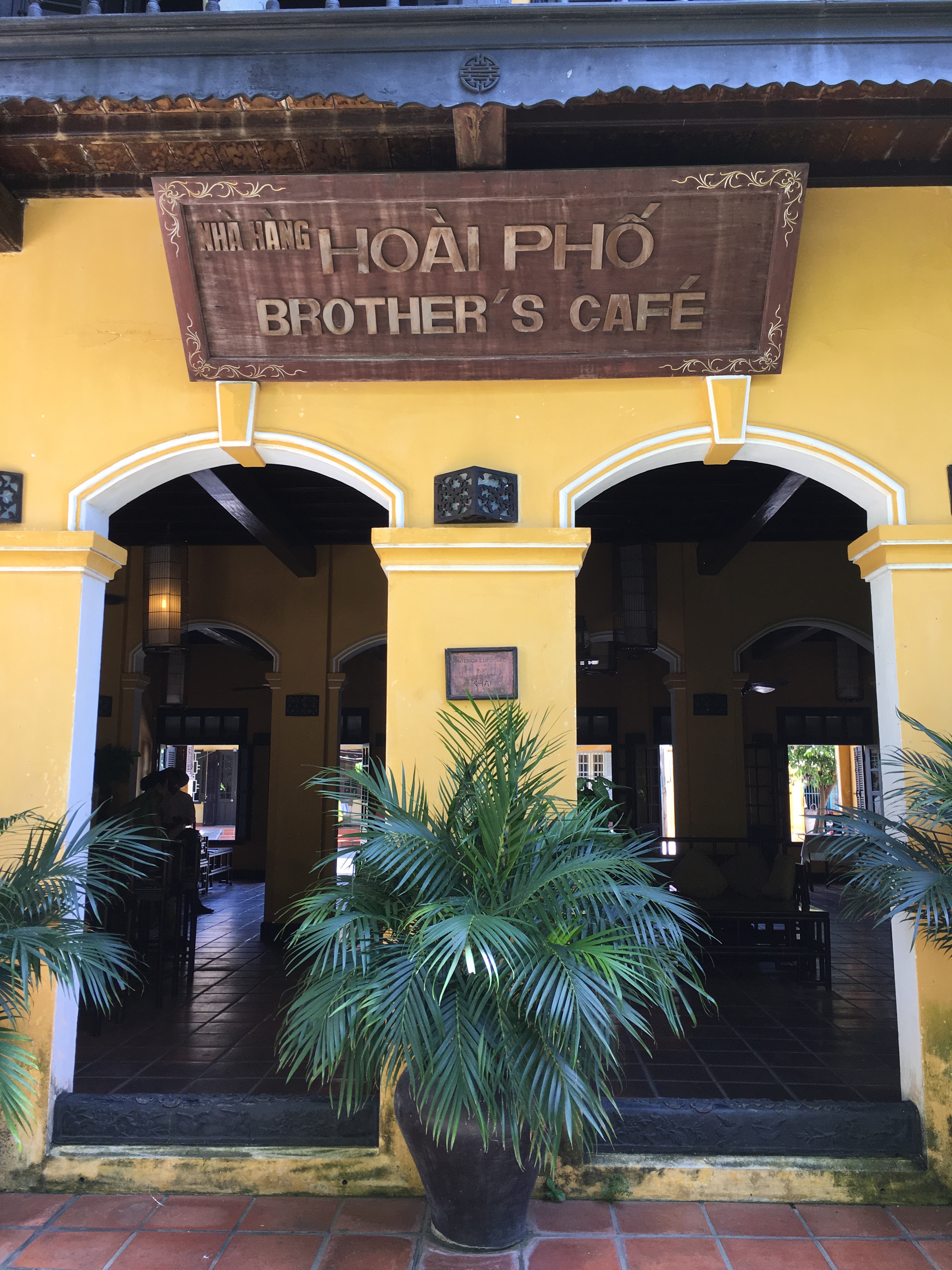 After seeing the market the tour stopped at Brother’s Cafe. A culinary cooking lesson awaited us all. Brother’s is in an old French Police Compound right on the Main Street. The back of it opens onto the Thu Bon River.