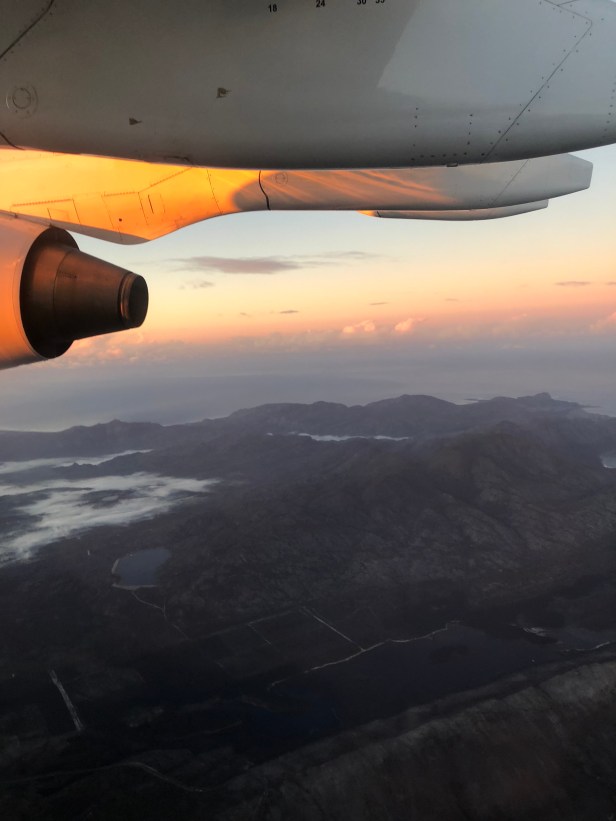 The sky was dark when our group arrived at the airport. Within the hour, the sun was waking up, rising to a new day. The plane departed, leveled off, and WOW! Mother Nature put on a spectacular show for me. The sunrise reflected on the plane’s wing, colored the horizon pink. and illuminated the scenery below! All of a sudden, I didn’t mind the predawn departure.