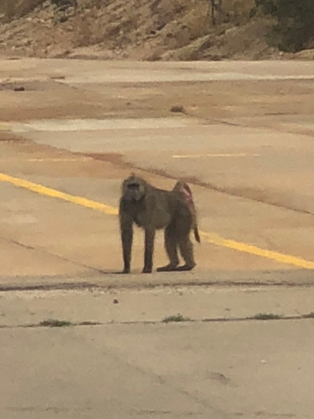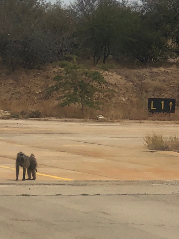The flight was quick and we started to descend. I looked down and saw a Baboon just a few feet away watching us taxi in!! I remember thinking, I’m not even in the Game Reserve yet!!